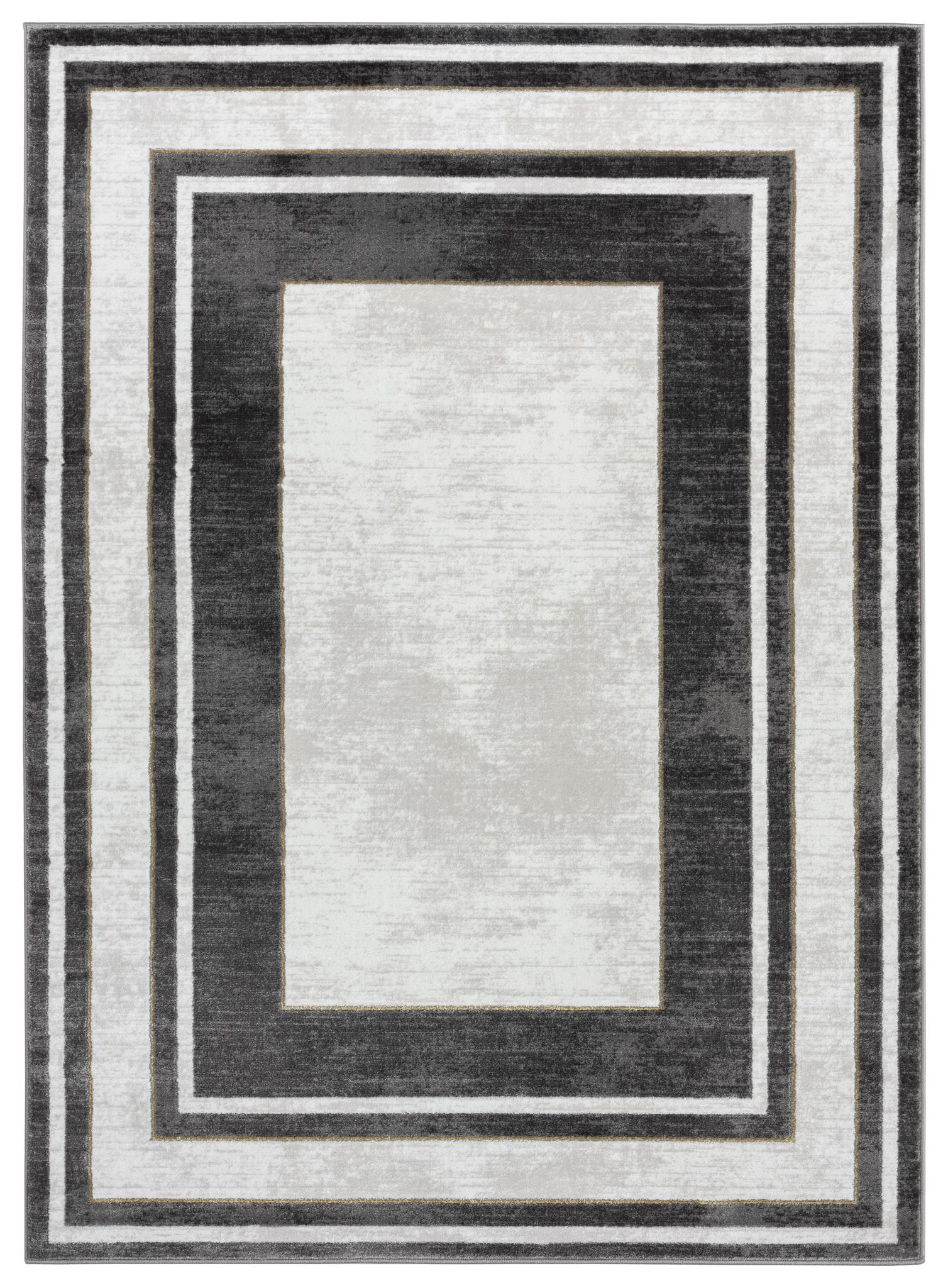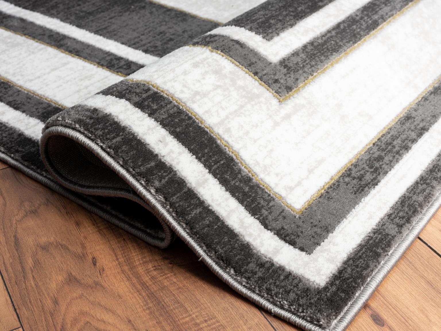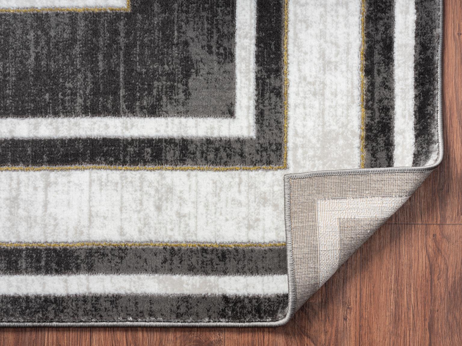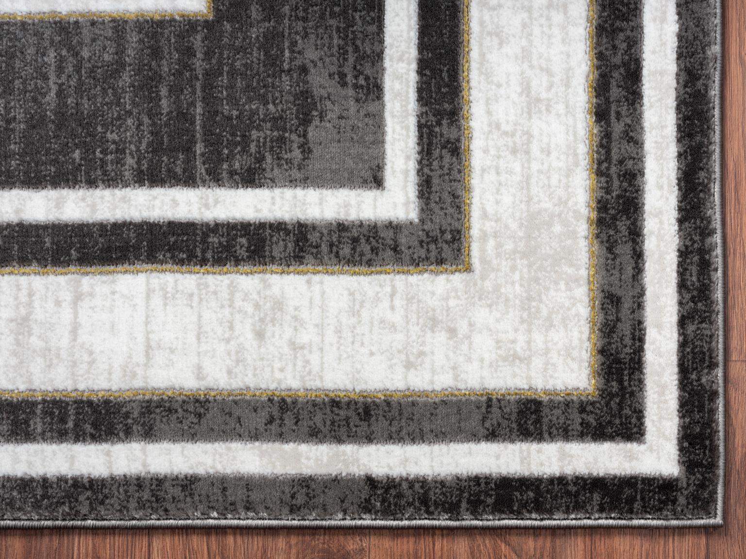 Introduce the Brooklyn Rug Collection to your living space, featuring a trendy geometric design in grey, white, and gold. Made from Heatset Polypropylene and Polyester with a Jute backing, this machine made rug boasts a durable edge serged finish and a low pile height of 0.28 inches. Expertly crafted, this rug will enhance any room.