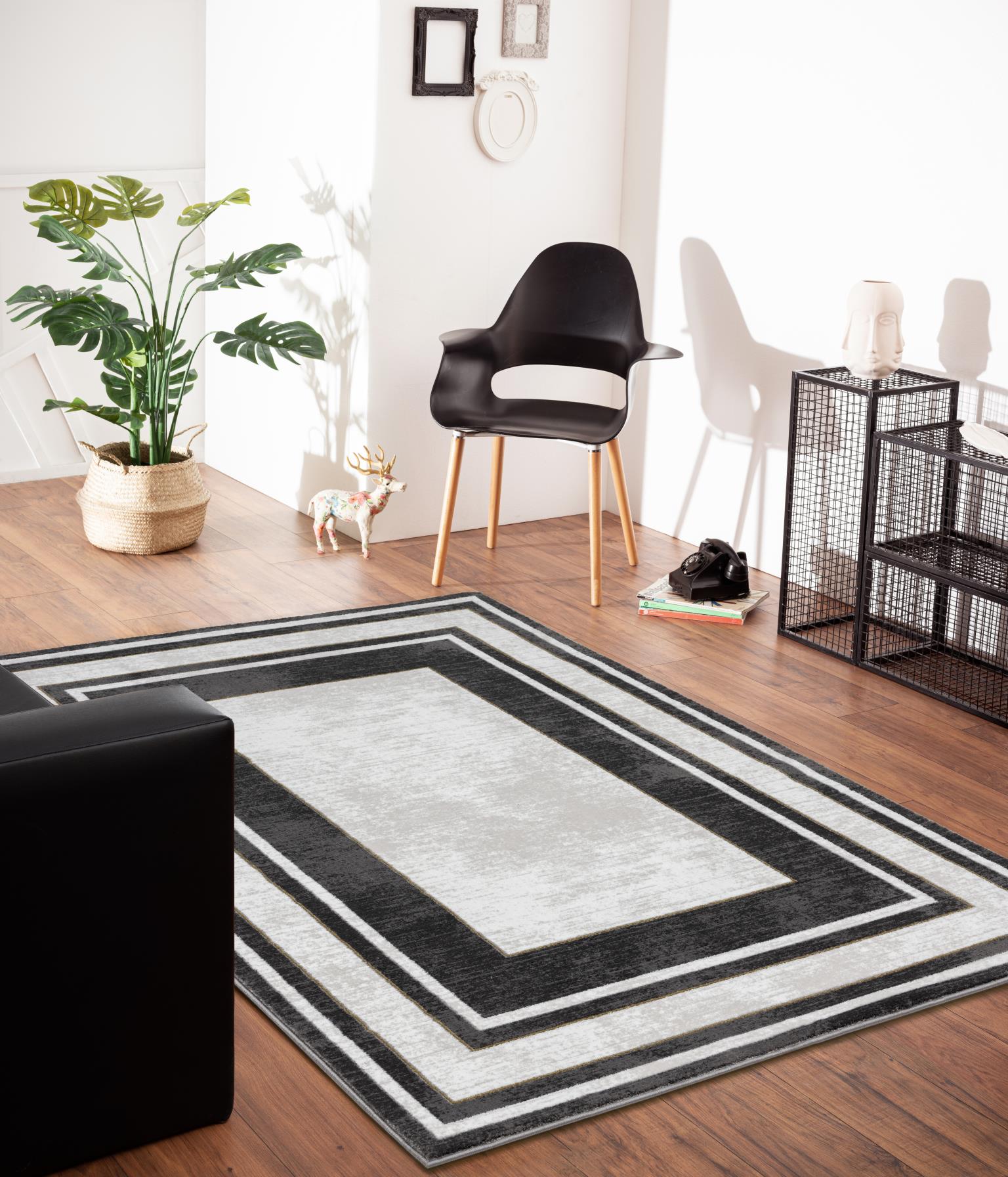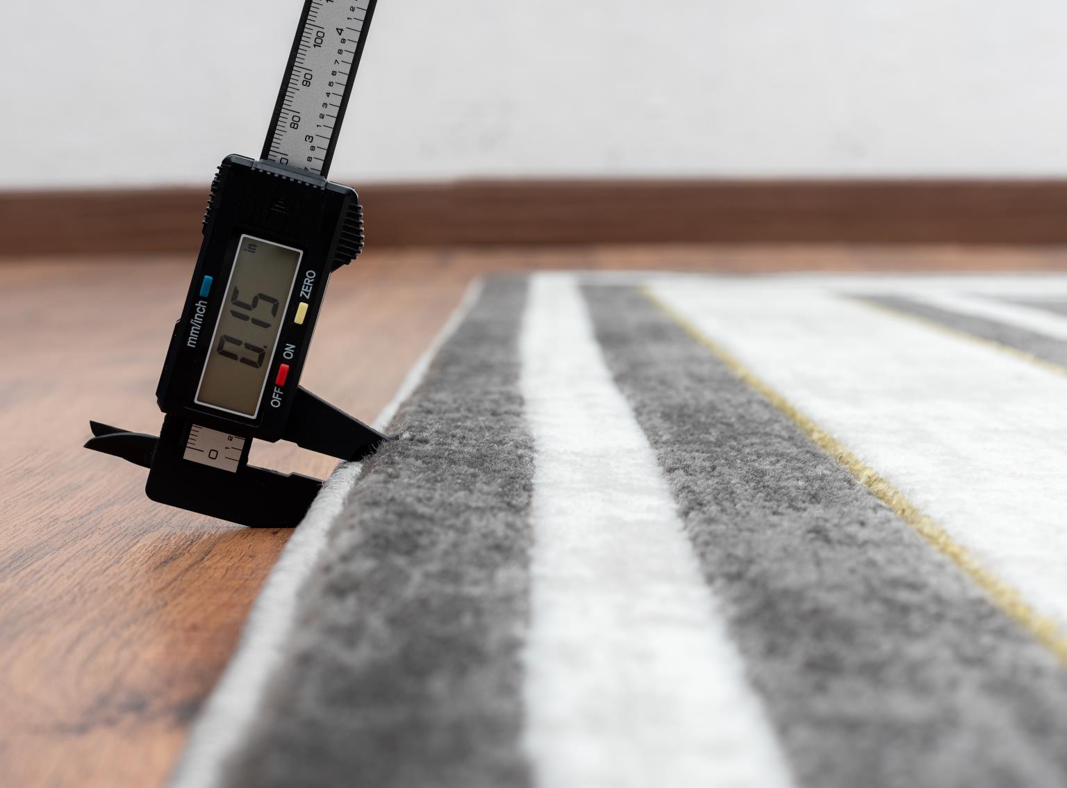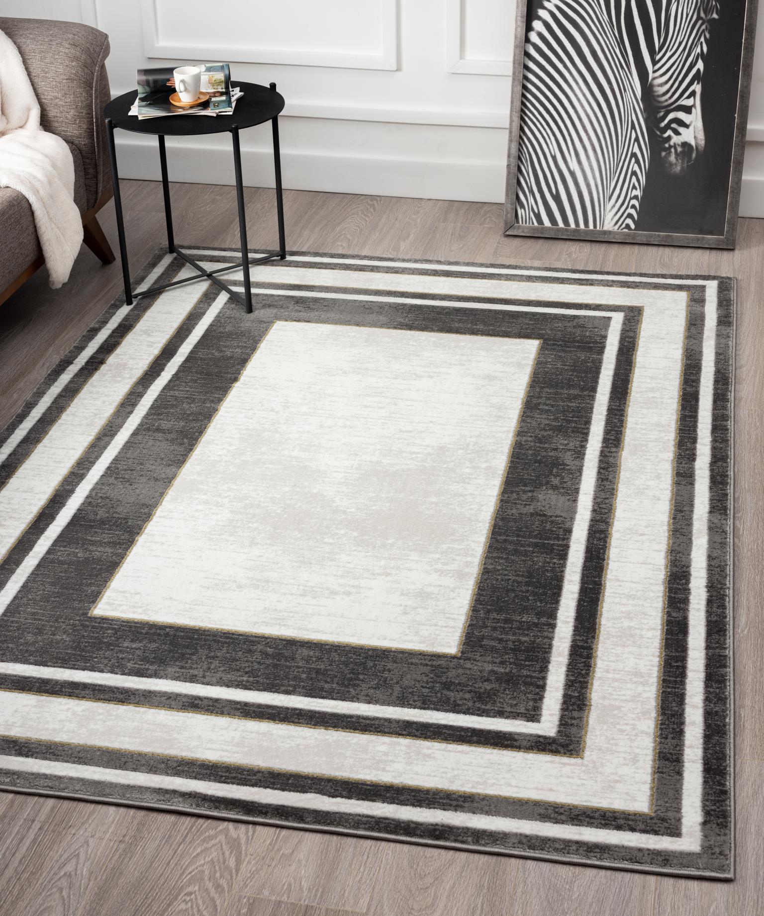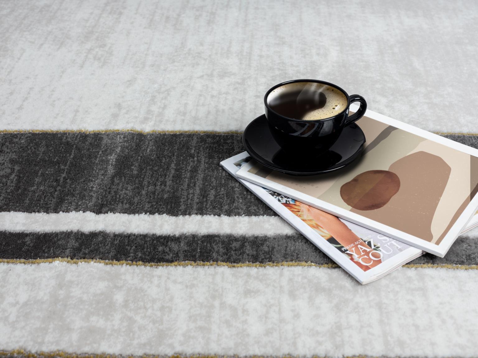 Introduce the Brooklyn Rug Collection to your living space, featuring a trendy geometric design in grey, white, and gold. Made from Heatset Polypropylene and Polyester with a Jute backing, this machine made rug boasts a durable edge serged finish and a low pile height of 0.28 inches. Expertly crafted, this rug will enhance any room.
