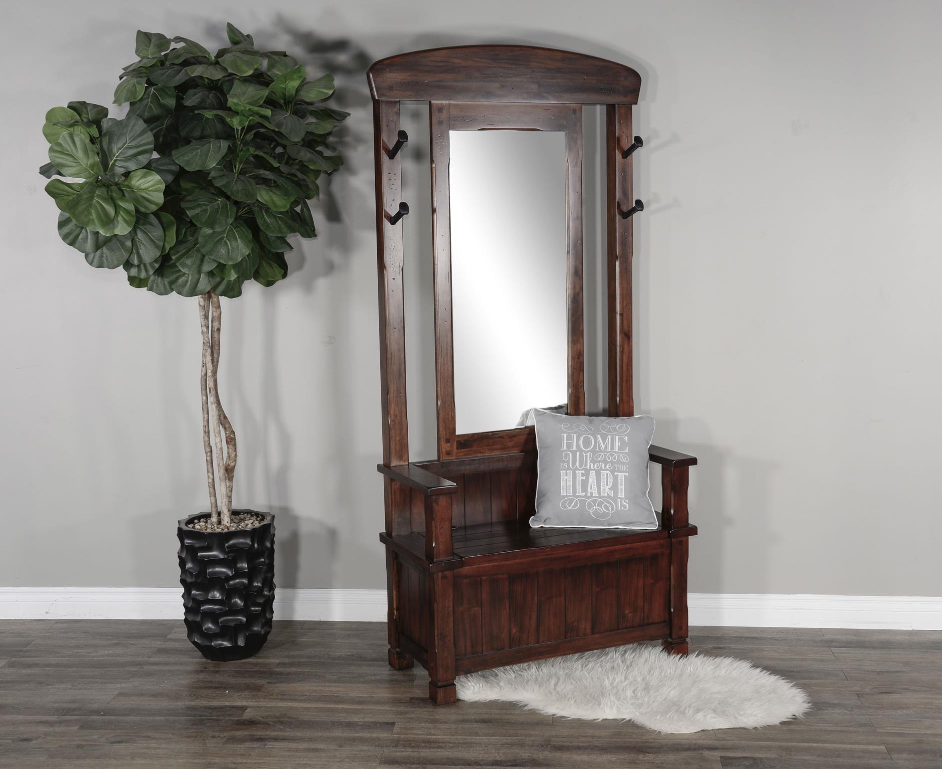 This hall tree has just what you need to keep your entryway, hallway, or mudroom clutter-free. It features four railroad spike metal hooks that easily hold your coats, leashes, or bags. And down below, one large storage bench that is great for holding your shoes.