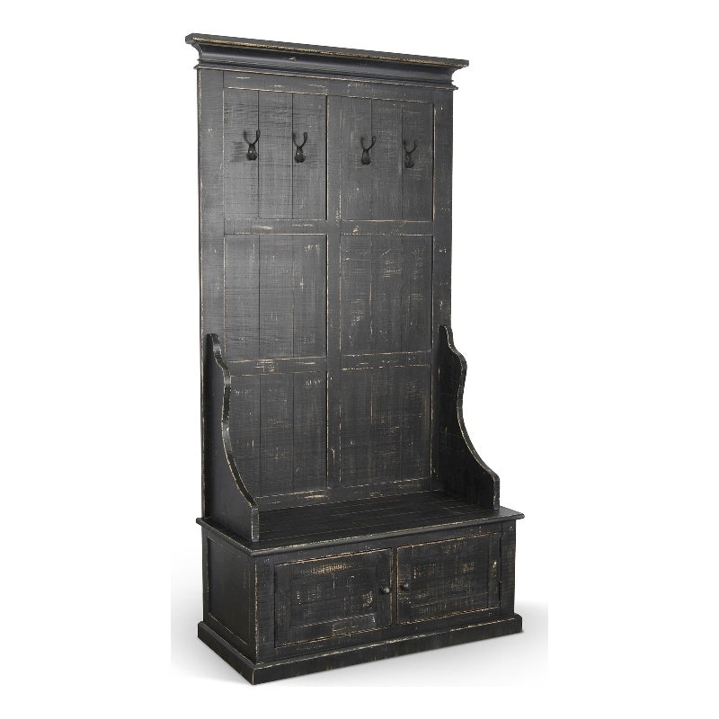 Expertly crafted from luxurious mahogany wood, the Marina Black Sand Hall Tree offers both style and functionality. With four double prong hooks and two shoe cubbies, optimal storage space is provided. The planked and framed design, adorned with crown molding accents, adds a touch of elegance to any entryway or mudroom.