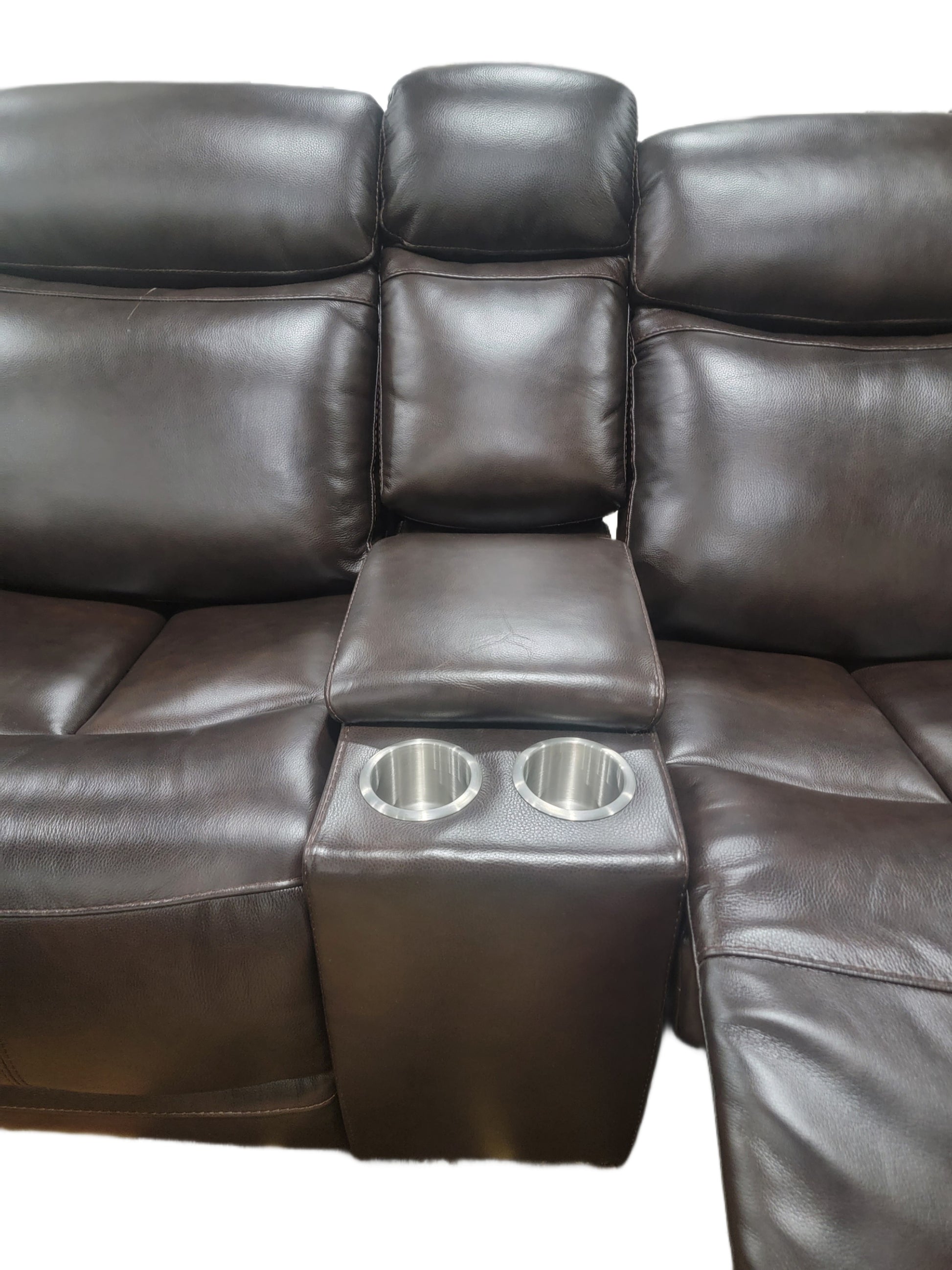 Cocoa 3-piece Leather Reclining Sectional with Console